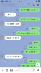 やり取りをしていると今日会えるなら会いたいってことだったのでラインを交換。電話をして公園で会うことに。